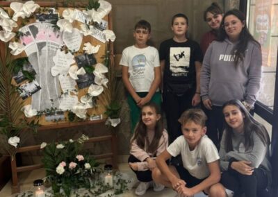 I ove se godine u našoj školi obilježio 18. studenog, dan kada sva buka na trenutak utihne, kada su srca tužnija no inače, a ponos veći nego ikad. Šestaši su, zajedno s profesoricom Hrvatskog jezika – Ivanom Bačić, obilježili Dan sjećanja na žrtve Domovinskog rata prikladnim plakatom i paljenjem svijeća u atriju naše škole. Bijelom bojom obilježili su slobodu u kojoj danas uživamo, a stihovima Hrvoja Hegedušića “ Stoji grad” podsjetili svih na snagu i hrabrost našeg naroda.