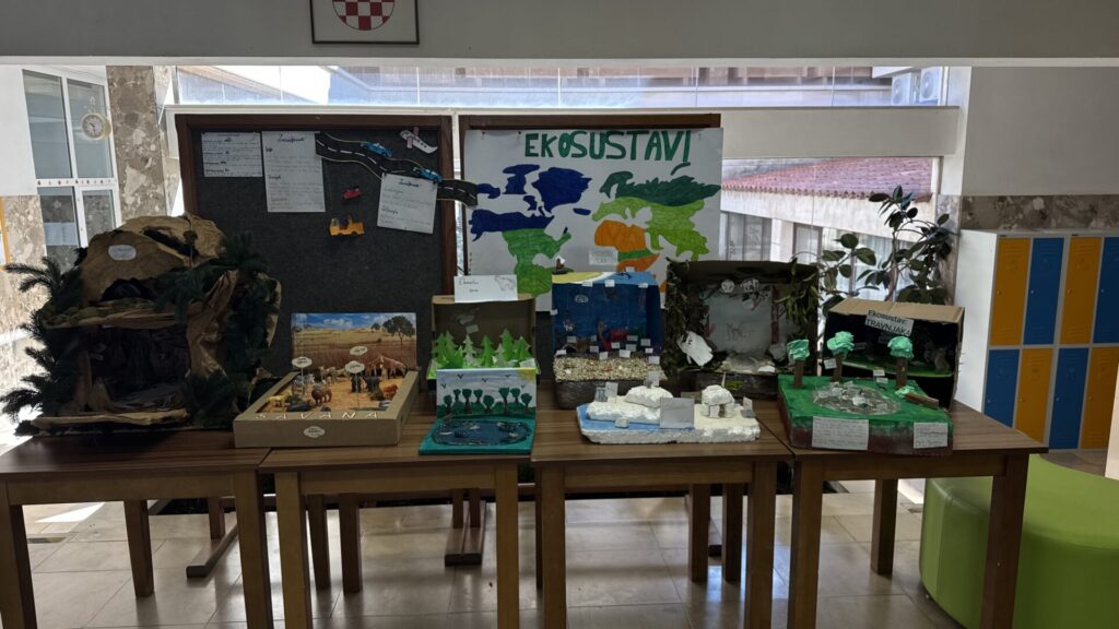 Učenici su tijekom izrade modela trebali što više reciklirati i koristiti što više stvari koje imaju u kućanstvu. Radovi su izrađeni od raznih materijala: žice, stiropora, kartona, plastike, vune, gume, plastelina, glinamola, papira… Iz tog razloga svaki je ekosustav jedinstven na svoj način. Učenički projekti izloženi u holu naše škole tijekom mjeseca ožujka 2026. godine.