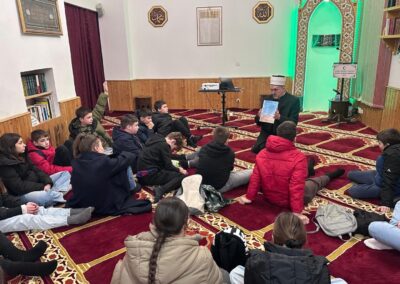 Nakon Prirodoslovnog muzeja prošetali smo do muslimanske zajednice Medžlis, tamo su slušali o povijesti osnivanja zajednice i prvim aktivnostima, o kulturi koja se razlikuje od naše, dobili su odgovore na pitanja zašto se skidaju cipele pri ulasku u džamiju, što je hijab, što su dnevni namazi te koji je dan svet u njihovoj vjeri. Puni dojmova nastavili su do Gradskog kazališta mladih gdje su imali priliku odgledati kazališnu predstavu “Galaktička pustolovina”. “Galaktička pustolovina” topla je i čarobna svemirska priča o Solari i Blipu, dvoje znatiželjnih putnika čija srca rastu sa svakom novom zvijezdom koju dotaknu. Putujući galaksijom, upoznaju šarolike planete i susreću neobična stvorenja koja im otkrivaju koliko je život zanimljiv. I ono najvažnije, likovi nam pokazuju kako je ipak naš dom mjesto gdje je srce najispunjenije.